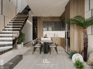 Trong thiết kế nhà phố hiện đại, việc kết hợp không gian phòng khách và bếp tạo nên sự liên kết mạch lạc, tối ưu diện tích sử dụng mà vẫn đảm bảo sự tiện nghi và thẩm mỹ. Công ty UNPAC đã thực hiện một dự án nội thất nổi bật tại khu dân cư Phú Hòa, với phong cách thiết kế hiện đại, mang đến một không gian sống đẳng cấp và thoải mái.